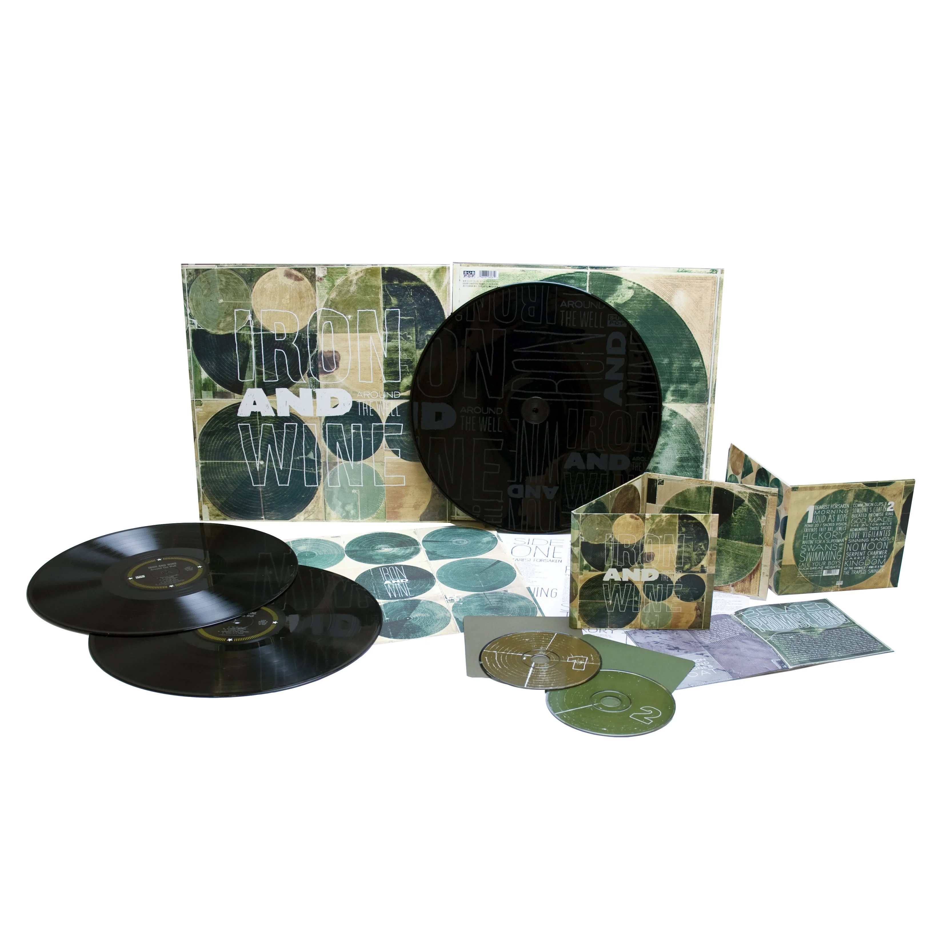 Collecting songs ranging from out-of-print to never-before-released, Around the Well spans Iron & Wine’s earliest sessions which yielded the band’s debut (2002’s The Creek Drank the Cradle) through material recorded for 2007’s The Shepherd’s Dog. The double-disc Around the Well collection is broken up into two sections. The first half is an assortment of hushed home recordings, unedited and raw, and the second highlights moments captured in the confines of proper studios with the help of other musicians, friends and engineers. The album’s title comes from a line in the song “The Trapeze Swinger,” a fan favorite which was written for and included in the movie In Good Company. Three more songs written and recorded for the film finally make their appearance here as well: “Belated Promise Ring,” “God Made the Automobile” and “Homeward, These Shoes.” Around the Well also brings together hard-to-find covers such as The Flaming Lips’ “Waitin’ for a Superman” and New Order’s “Love Vigilantes,” along with one of Iron and Wine’s earliest originals, “Sacred Vision.”