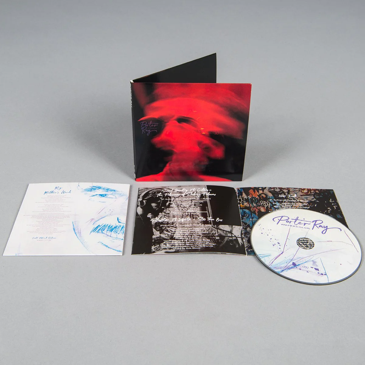Every word, every beat, every piece of visual ephemera that one experiences on and in this project is resultant of years of conversations and shared exposures, common highs and mutual lows. From the painterly photographs that are the cover art, to the sketches that embrace the physical discs, to the sonic collaborations, Porter Ray creates with those who have been close in spirit and proximity.